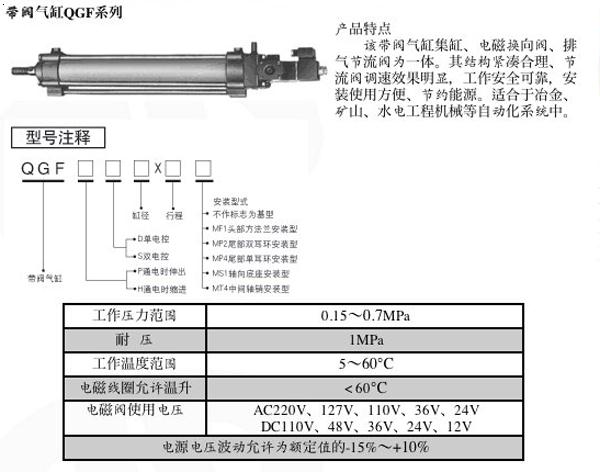 帶閥氣缸QGF系列